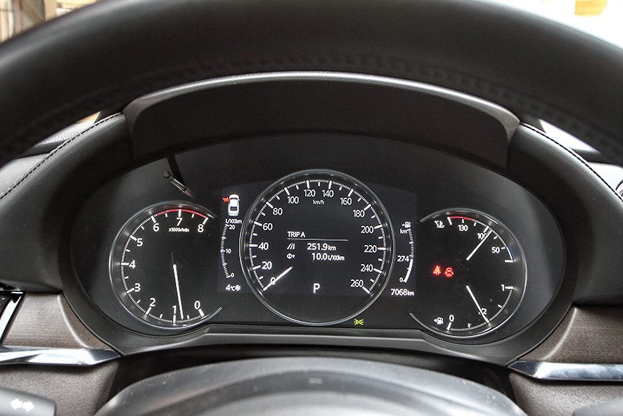 Вопрос был актуальным во время теста универсала в простеньком оснащении Touring, но мигом снялся, едва я открыл дверь седана в комплектации Top. В ней и только в ней Mazda 6 предложит новые приборы с 7-дюймовым дисплеем по центру, который стал одновременно и цифровым спидометром с нарисованной стрелкой, и экраном бортового компьютера.