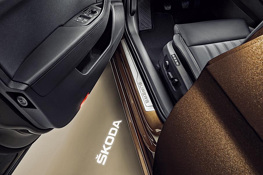 Впервые на серийной Шкоде появились светодиодные фары с матричной технологией full-LED Matrix. Это прерогатива машин в «верхних» комплектациях Style, Laurin & Klement и SportLine, которые, помимо прочего, отличаются светодиодными задними фонарями. Версии Active и Ambition попроще, однако тоже с полностью светодиодной головной оптикой. Кроме того, светодиоды использованы в противотуманных фарах и проецируют логотип на асфальт.