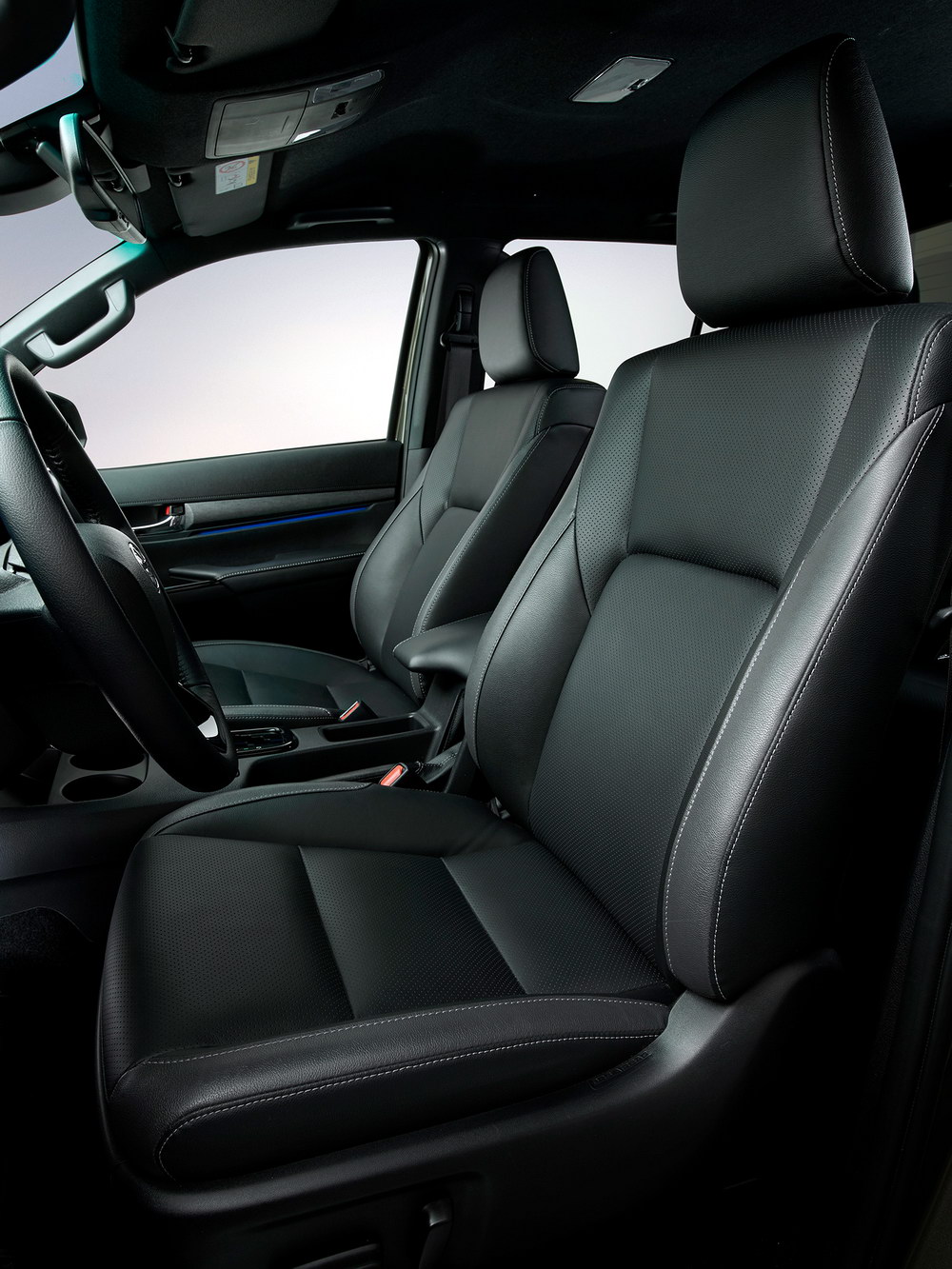 В салоне появилась усовершенствованная мультимедийная система с 8- дюймовым монитором и поддержкой Apple CarPlay и Android Auto. Приборная панель осталась аналоговой, но в ее центре встроен небольшой цифровой экран диагональю 4,2 дюйма. Топовые версии пикапа получили фирменный комплекс систем безопасности Toyota Safety Sense.