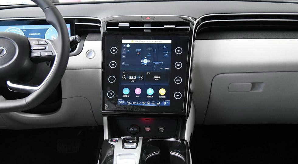 Главной особенностью интерьера стала мультимедийная система с вертикальным тачскрином диагональю 10,25 дюйма и дополнительными сенсорными же кнопками по бокам, отвечающими за управление «климатом». Цифровая «приборка» и кнопки вместо традиционного селектора коробки передач такие же, как у обычного паркетник.