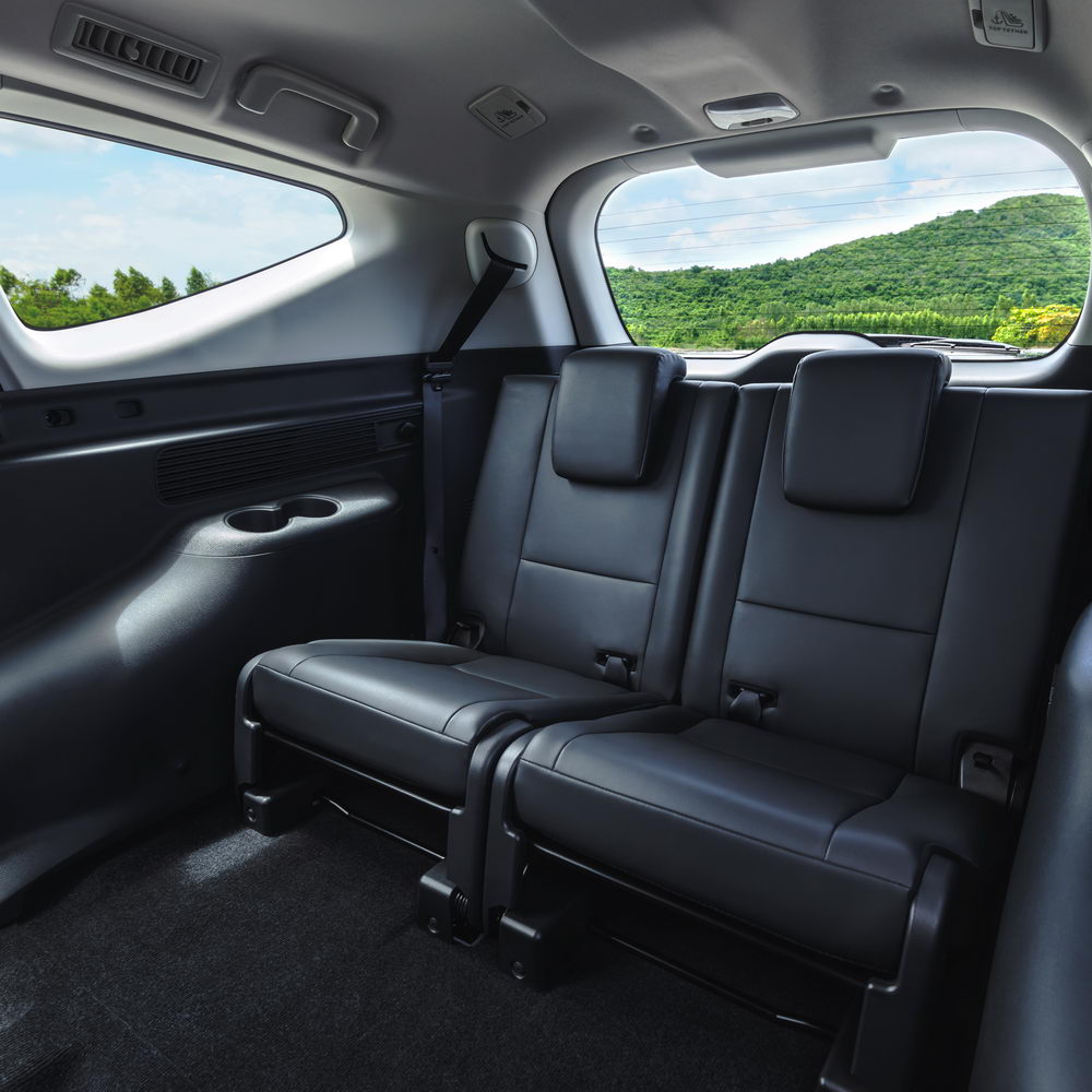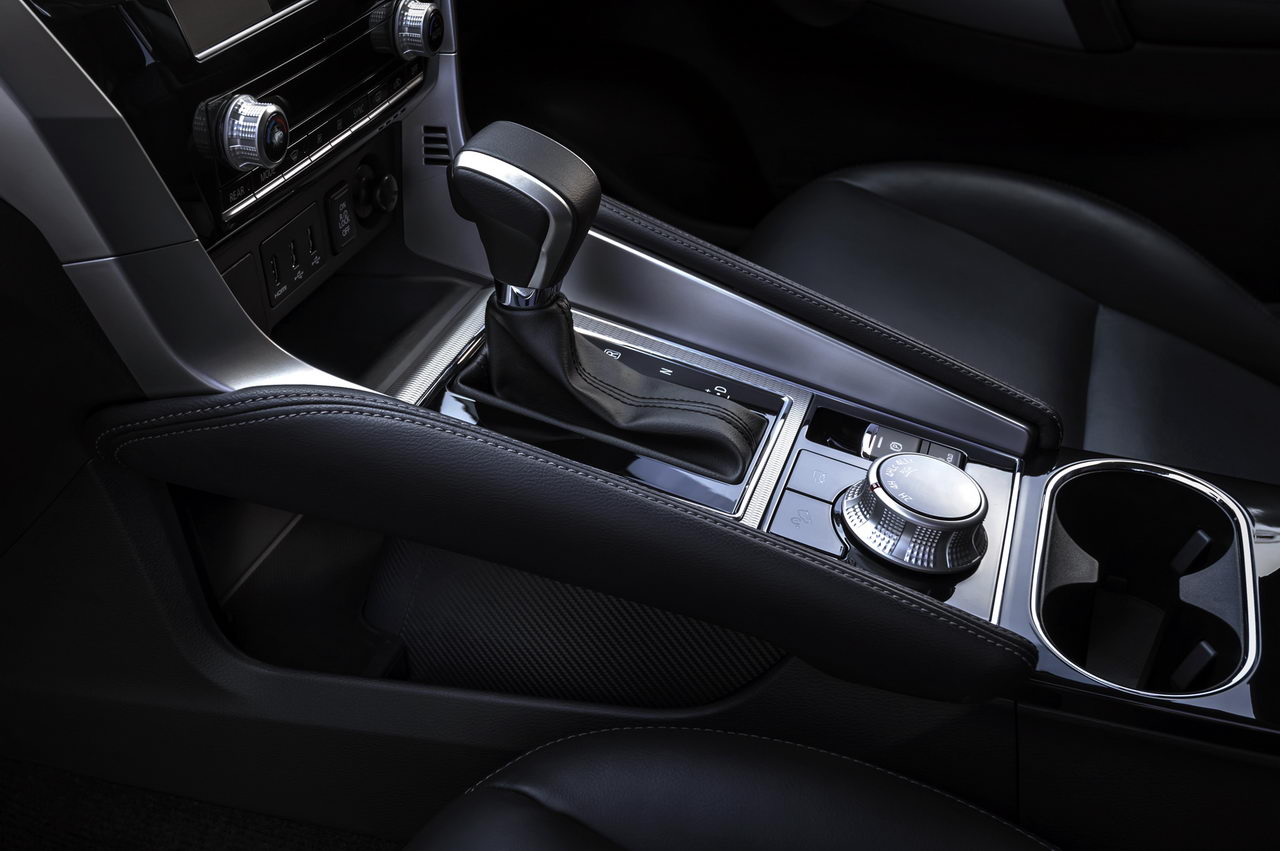 В салоне Pajero Sport появились цифровая приборная панель и обновиленная мультимедийная система Smartphone-Link Display Audio с дисплеем на восемь дюймов. Открывать багажник и замки теперь можно с помощью смартфона. Во втором ряду есть розетка переменного тока и USB-разъемы.