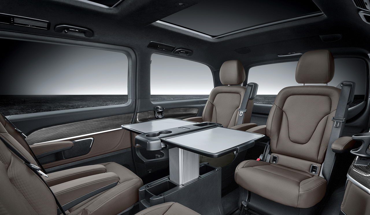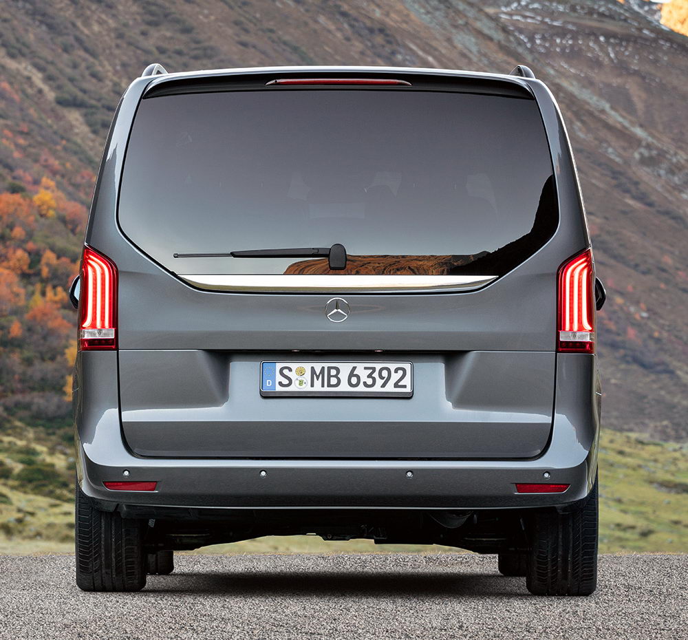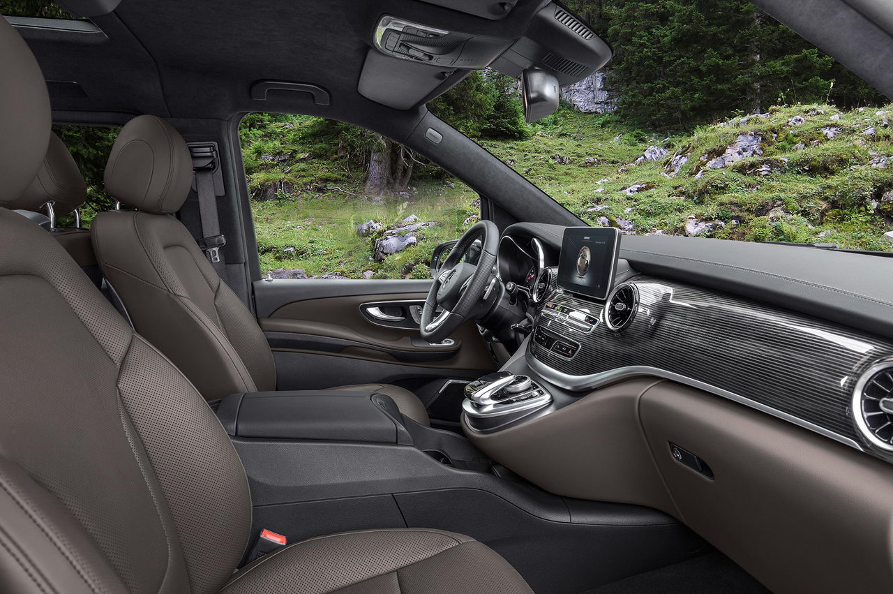 В стандартное оснащение V-Class вошли функция Crosswind Assist, подтормаживающая колеса для удержания автомобиля на дороге при сильном боковом ветре, система активного экстренного торможения с распознаванием пешеходов и неподвижных объектов, а также улучшенная система автоматического управления дальним светом.