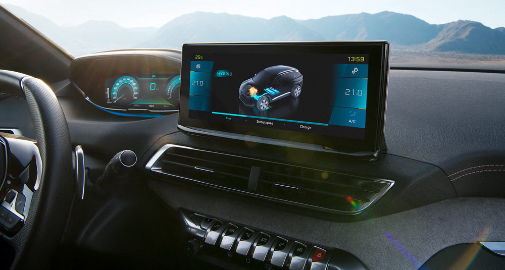 Цифровой кокпит i-Cockpit получил новый 10-дюймовый сенсорный экран высокого разрешения, а также поддержку Apple CarPlay и Android Auto. В списке опций: беспроводная зарядка и два дополнительных порта USB на втором ряду. Приборка – большой экран с диагональю 12,3 дюйма.