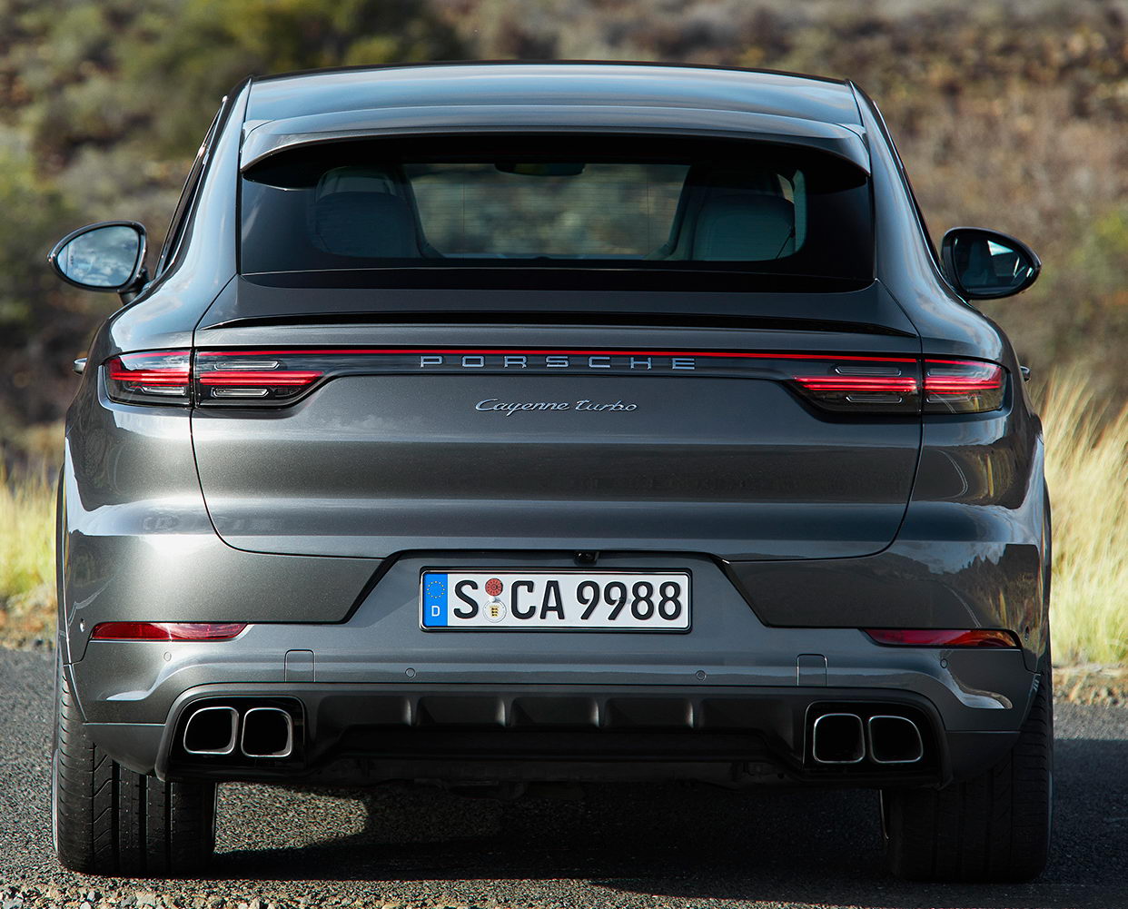 При этом, передняя часть в сравнении с простым Кайенном не изменилась, сзади же линия крыши плавно ниспадает. Соответственно изменились задние фонари, место крепления переместилось с двери на бампер.