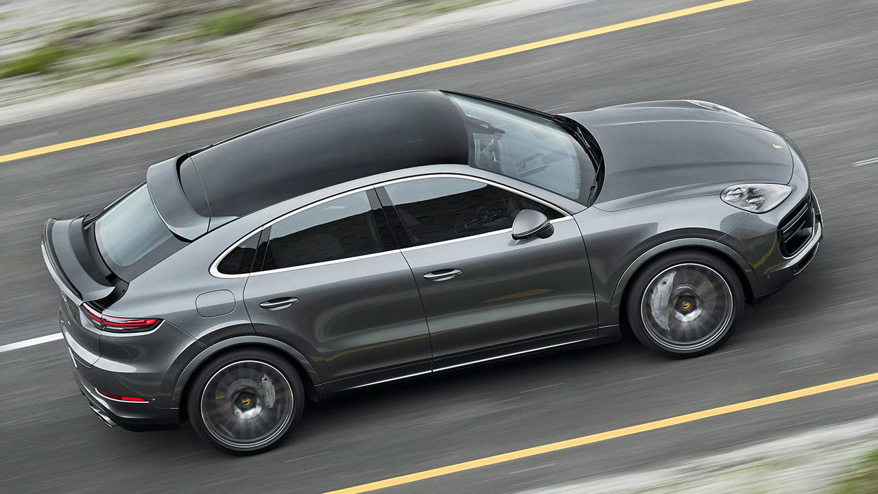 Во всех версиях Cayenne Coupe установлен спойлер на крыше, который является частью системы активной аэродинамики Porsche Active Aerodynamics – на скоростях выше 90 км/ч он выдвигается на 135 мм и повышает прижимную силу на задней оси.