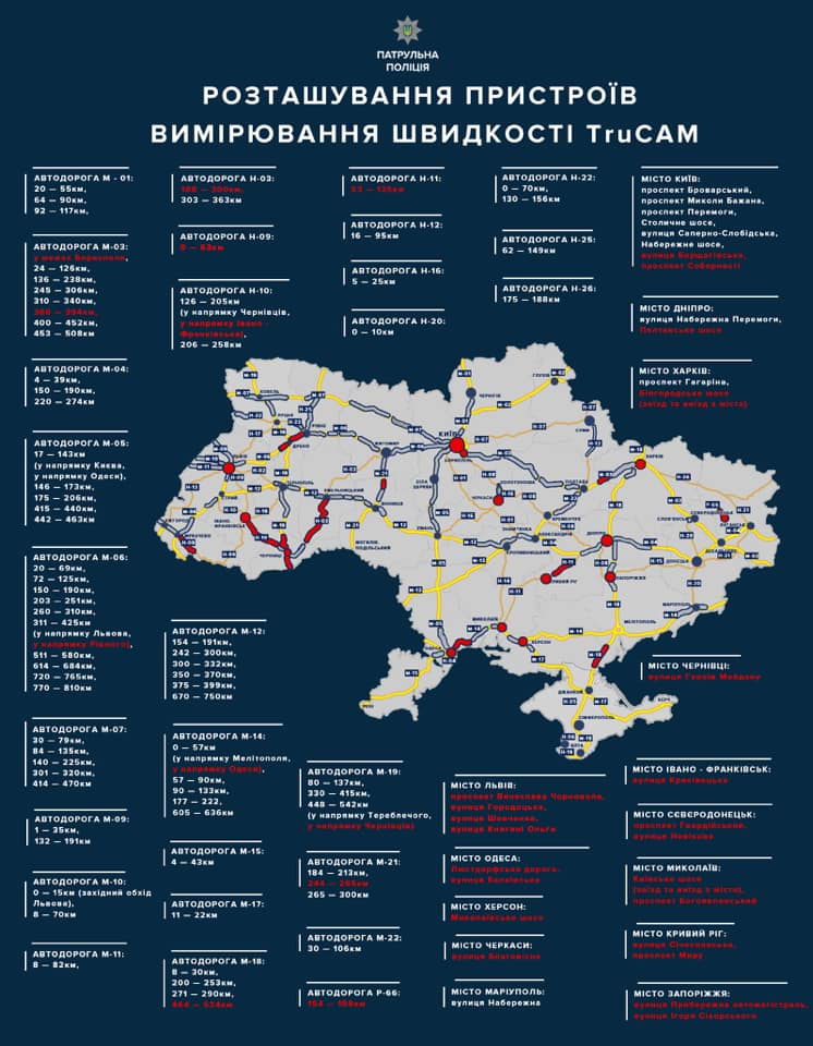 Об этом сообщил в Facebook заместитель начальника Департамента патрульной полиции Алексей Билошицкий: “К тем 75, которые уже работают, добавились еще 25 – на участках с повышенной аварийностью, причиной которой является преимущественно превышение разрешенной скорости”.