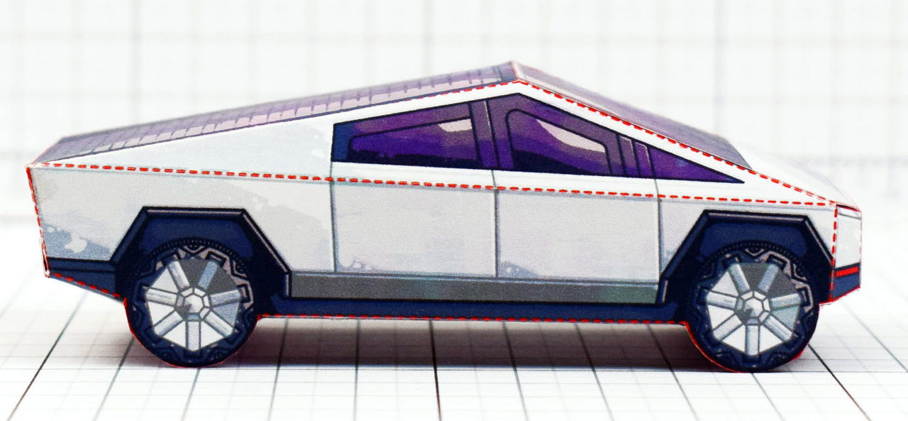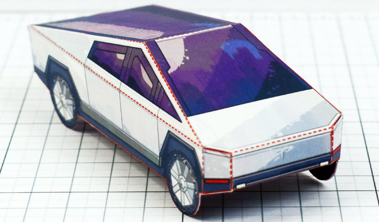 В ожидании пикапа Tesla Cybertruck, который появится в продаже лишь в конце 2021 года, можно своими руками изготовить его масштабную модель и любоваться на угловатые формы.