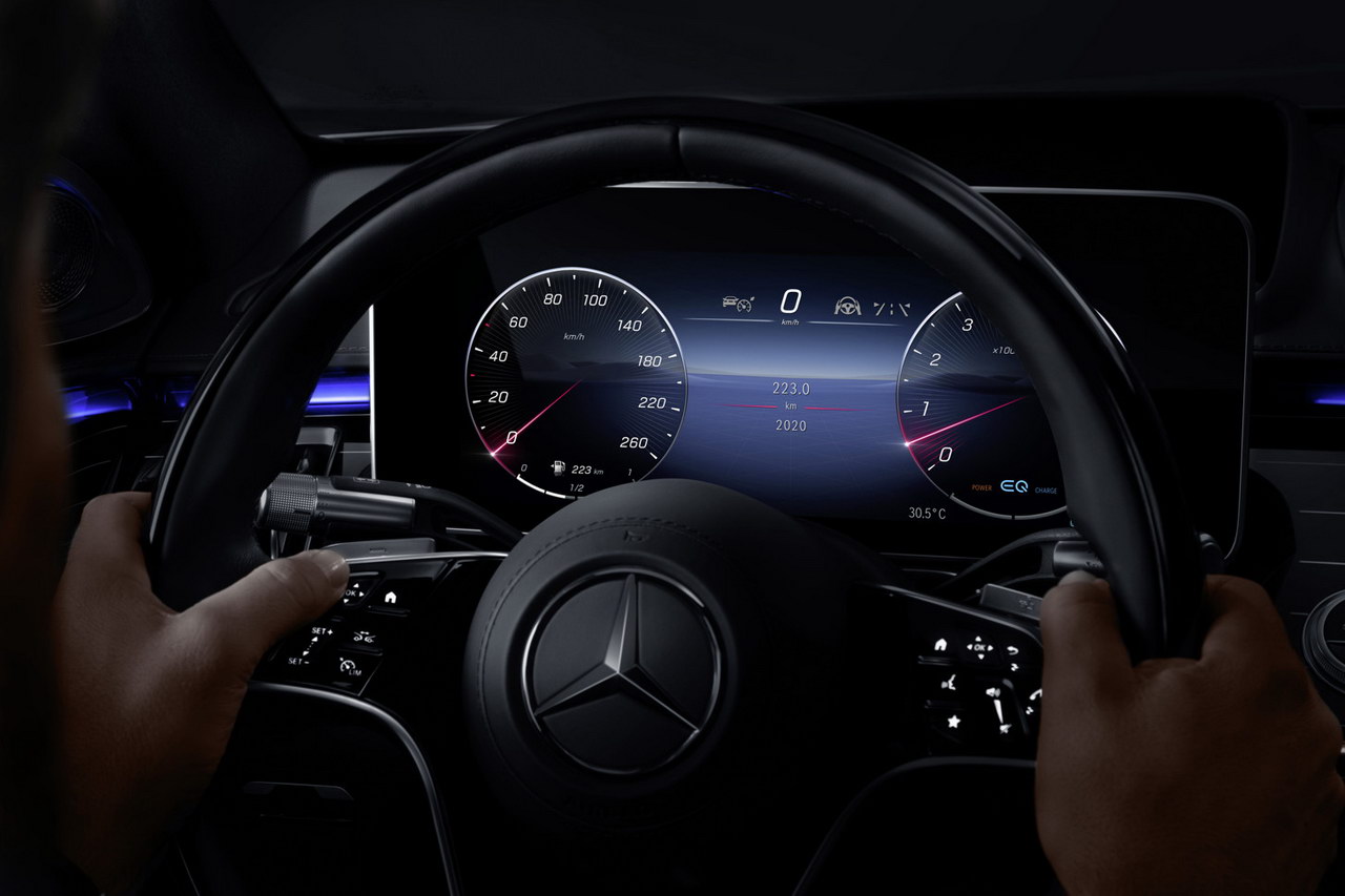 Ранее был рассекречен интерьер нового S-Class. Флагманский седан штутгартской марки получил мультимедийную систему MBUX второго поколения и сразу шесть различных экранов: цифровая приборная панель, проекционный дисплей, тачскрин управления информационно-развлекательным комплексом и три дисплея для пассажиров заднего ряда.