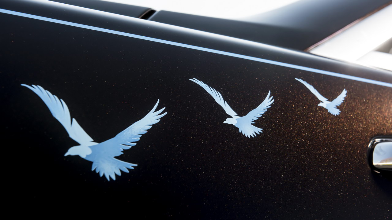 Еще одно купе создавалась с участием вокалиста группы The Kinks Рэем Дэвисом, оформившим свой Wraith с использованием текстов песен Shangri-la и Drivin из альбома Arthur 1969 года. В салоне – вышитые автограф лидера группы и одно из его писем, а на зонтах – строчки из песни Sunny Afternoon.
