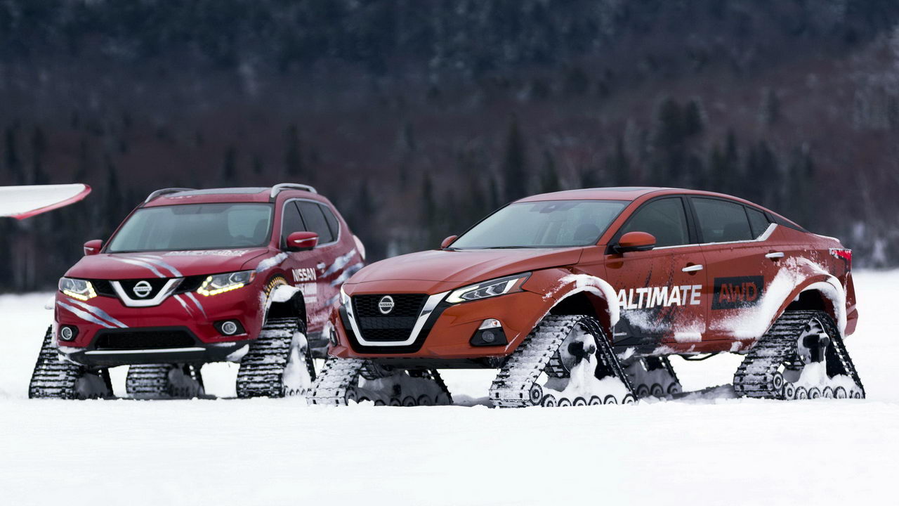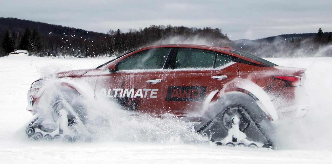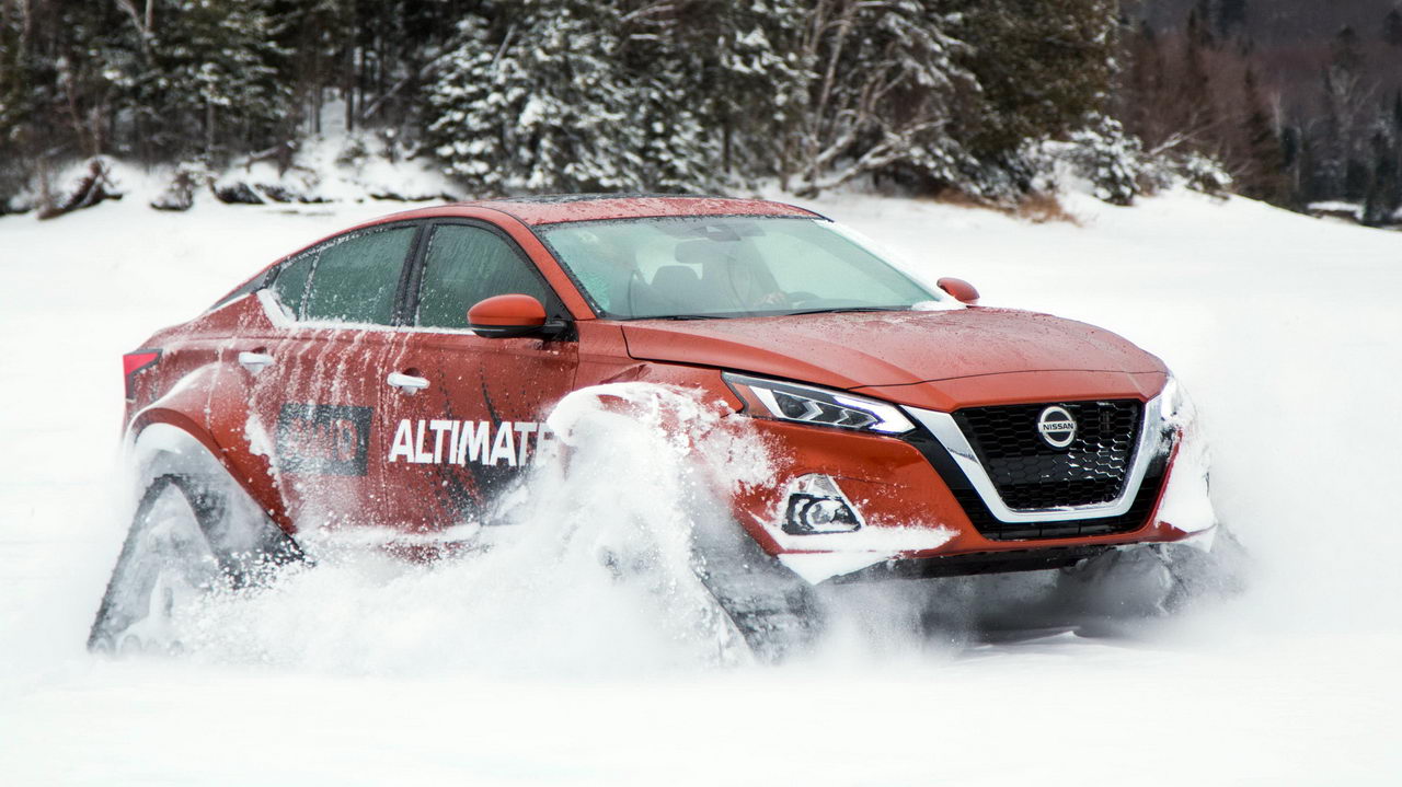 Компания Nissan представила экспериментальную версию седана Altima на гусеничной тяге, приуроченную к годовщине выпуска полноприводной модификации модели.
