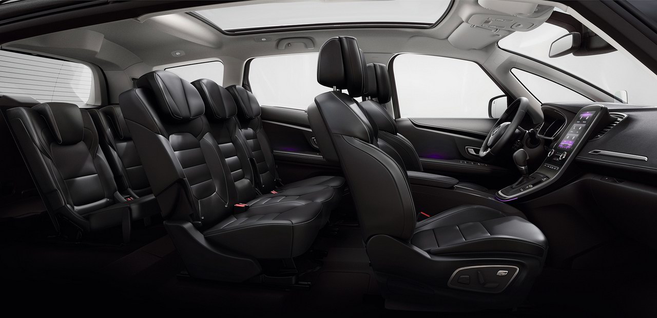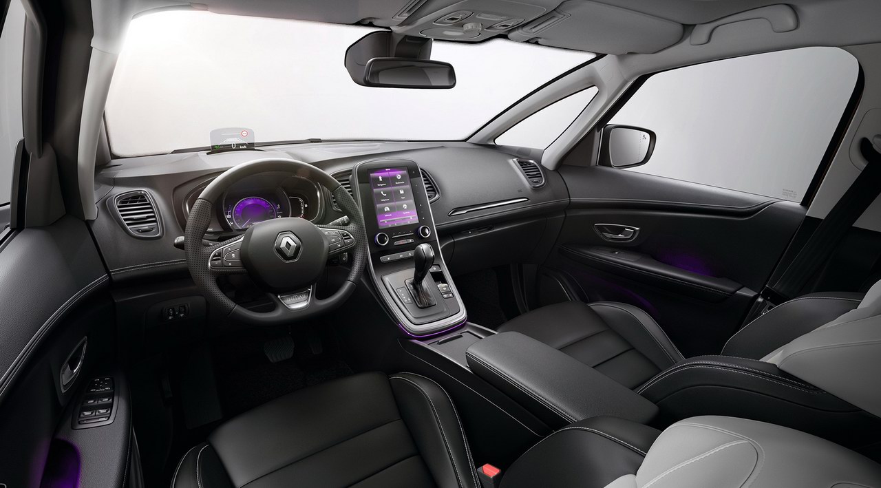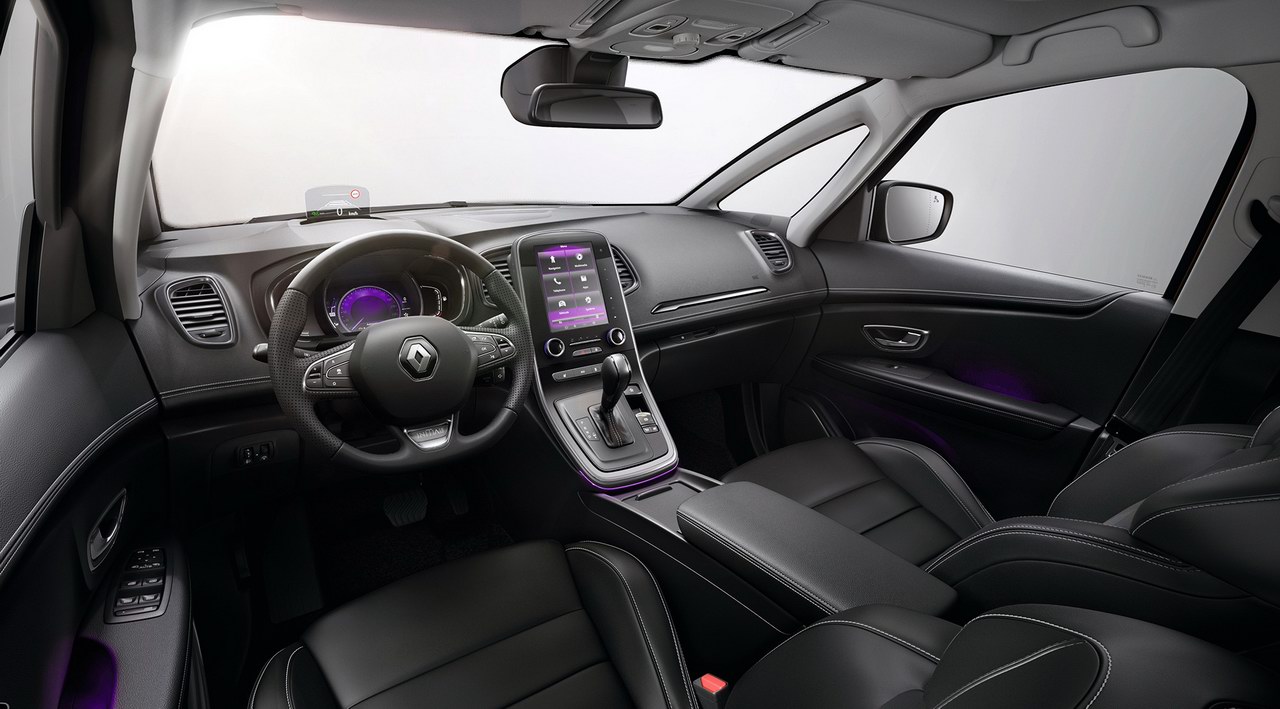 В интерьере Scenic и Grand Scenic в изобилии присутствует кожа, которой отделаны не только сиденья, но и рулевое колесо с рукояткой коробки передач. В перечень оснащения входят электропривод и обогрев кресел с функцией массажа, аудиосистема Bose, цветной проекционный дисплей и парковочный ассистент. В качестве опций предлагаются панорамная крыша (€600), система контроля рядности движения (€250), а в Grand Scenic — два дополнительных кресла третьего ряда (€600).