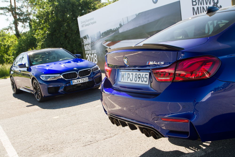 Как ни хороши и динамичны обновлённые MINI, но поездка на них по «Чайке» была только прогревочной разминкой перед встречей с двумя яркими представителями славного семейства BMW M. К нам привезли купе M4 в исполнении CS, а также седан M5 Competition – это классика М-жанра.