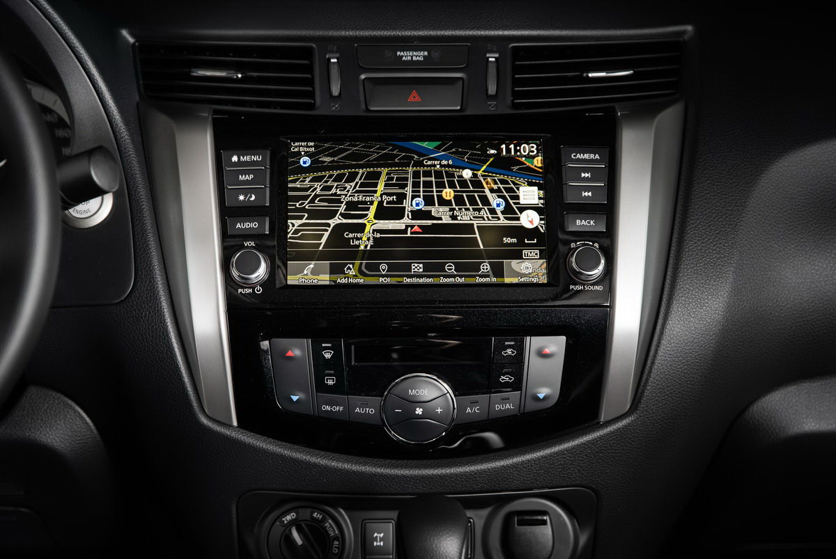 Обновленный Navara оснащен системой кругового обзора – передовой для сегмента пикапов. Кроме этого, вне зависимости от комплектации новинка оснащается мультимедийной системой Nissan Connect с новым восьмидюймовым монитором и поддержкой систем Android Auto и Apple CarPlay. Интересный факт: передние сидения проектировались с использованием технологий NASA