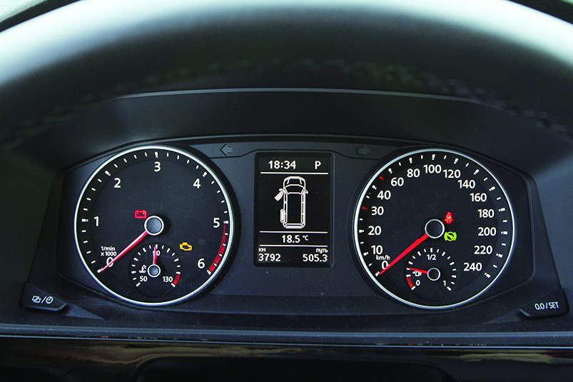 Второй разрыв. Солидный бус даже с загрузкой играючи опережает на светофорных стартах весь поток. Собственно, другого результата трудно ожидать с двухлитровым дизелем и его 400 Н·м уже при 1500 об/мин. Про семиступенчатую DSG уже и так давно всё сказано: она идеальна в плавности переключений, но, бывает, иногда тупит при необходимости резких ускорений с шоссейной скорости. Не беда: есть толковый спортрежим, в котором, кстати, коробка умело подтормаживает двигателем, а ещё ручной выбор передач.