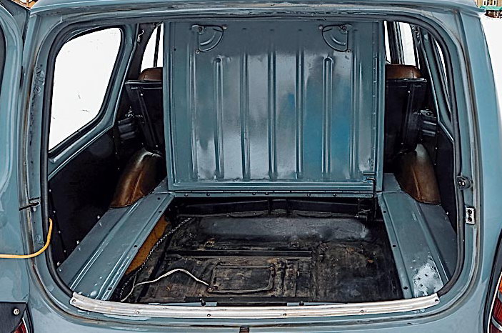 При внешнем сходстве полноприводного универсала с обычным есть у 411‑го много отличий. Двигатель пришлось поднять над ведущим мостом, усилили кузов. Появился оригинальный радиатор системы охлаждения, а дополнительно еще и масляный. Амортизаторы – рычажные вместо телескопических. Даже угол наклона рулевой колонки пришлось изменить. Кожух колонки Москвича‑407 в полноприводную машину не встраивался, поэтому здесь иной руль – со старого 400‑го Москвича. Но в целом по комфорту, отделке и качеству материалов салон оказался вполне на уровне тогдашних европейских стандартов для автомобилей подобного класса. Есть даже приличная печка и радиоприемник.