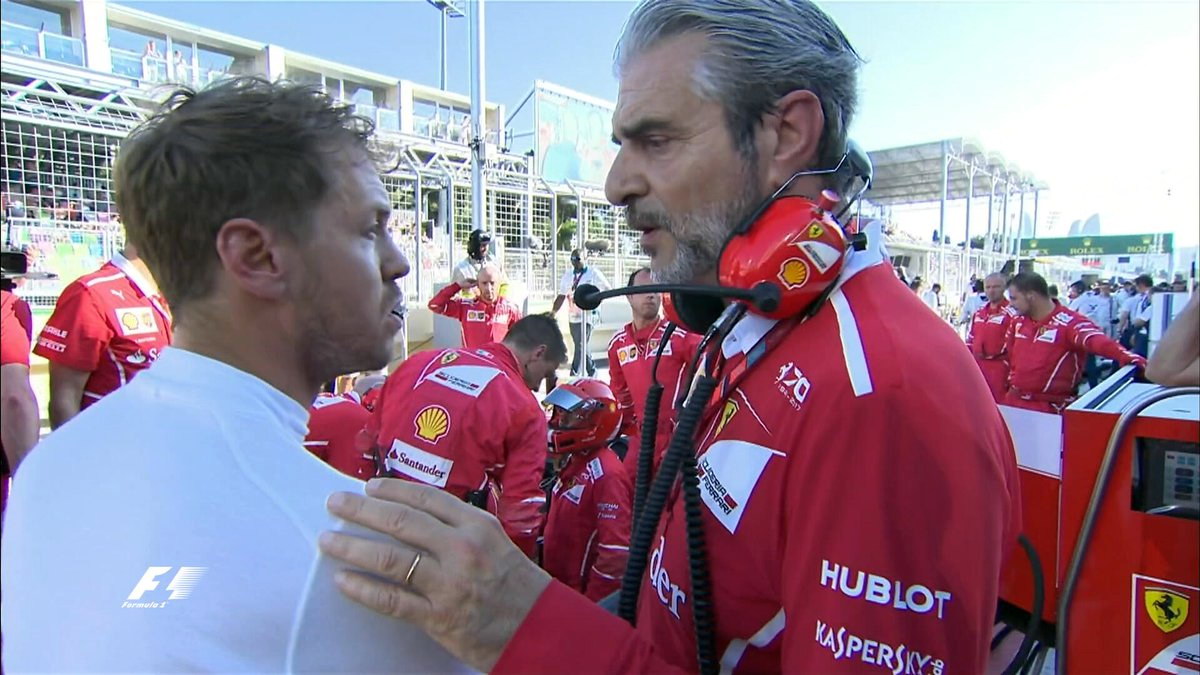 Три раза выезжал автомобиль безопасности, гонка останавливалась красными флагами на 25 минут для уборки обломков. В одном из эпизодов, едущий за сэфти-каром Хэмилтон замедлился в повороте и сзади в него ткнулся Феттель. Горячий немецкий парень посчитал, что британец это сделал умышленно – дал газу, поравнялся с Льюисом и ударил его в переднее колесо. Так четырёхкратный “построил” трёхкратного и получил 10 секунд штрафа “stop&go”. Не повезло и британцу, у которого расфиксировался защитный подголовник – пришлось лишний раз заезжать в боксы.