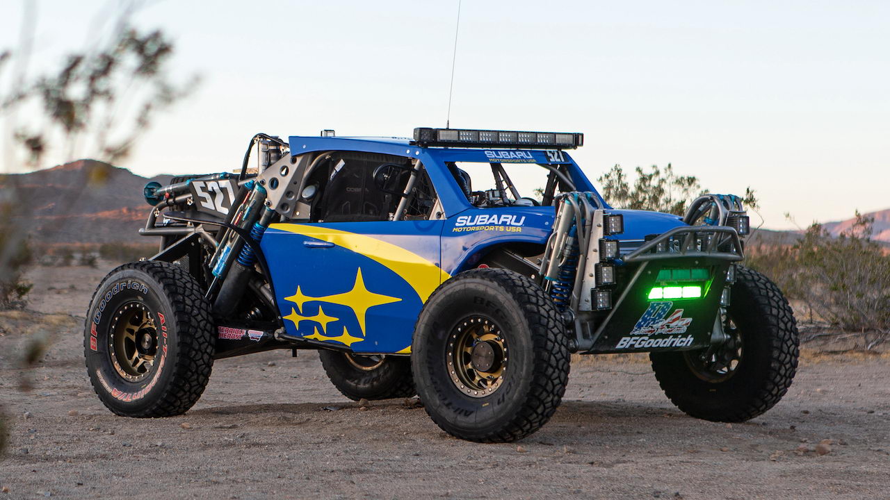 Внедорожный багги Crosstrek Desert Racer, выступающее в категории Class 5 Unlimited, оснащено фирменным атмосферным «оппозитником» объемом 2,5 литра, выдающим 304 лошадиные силы. Сам автомобиль окрашен в ливрею раллийных Subaru — сочетание синего и золотистого цветов.