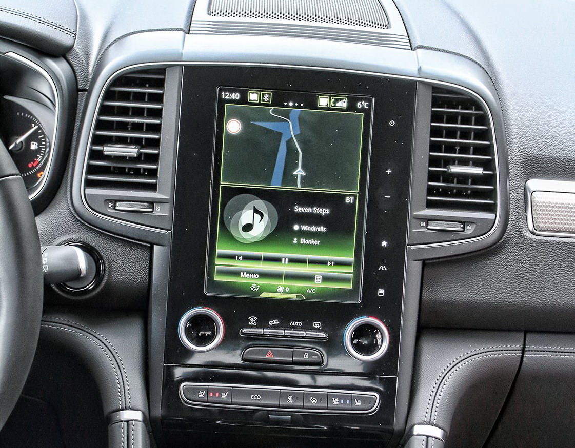 Крупным «планшетом» на консоли и полностью цифровой приборной панелью не удивишь – они уже знакомы и по дорестайлинговому Колеосу, и по другим моделям Renault. Симпатично, наглядно, ярко – чего ещё желать? У медиасистемы сейчас к функционалу добавили интеграцию со смартфонами: вообще отлично.