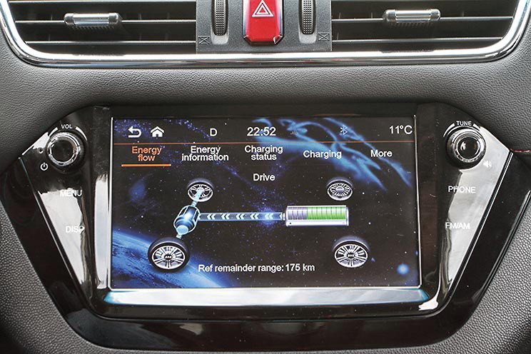 На консоли – сенсорный дисплей медиасистемы. Функционал такой же неплохой, как у JAC S3: есть и Bluetooth, и подключение к смартфону (непростое, правда). Однако у электромобиля он логично дополнен данными о работе электросистемы. Наглядная картинка о взаимных перетеканиях энергии между мотором и батареей, статистика энергопотребления, информация о зарядке – в общем, все интересные подробности здесь нетрудно отыскать.