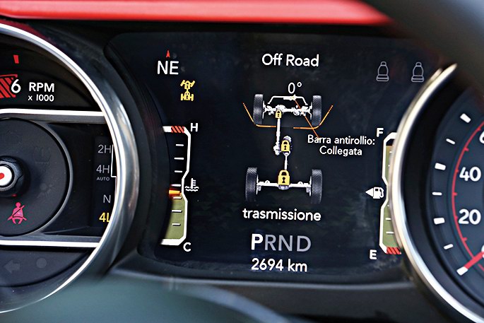А двигатель-то еще и турбированный, 272-сильный, впервые опробованный на шустром кроссовере Alfa Romeo Stelvio. Там он явно к месту, а вот подойдет ли для бездорожья? Увы, на ездовой презентации новинки не оказалось более-менее серьезной грязи, так что пока можем лишь гадать. Но первые впечатления, полученные на легкой пересеченке, обнадеживают: мне понравилось управление тягой, которую довольно легко дозировать. По характеру новый мотор чем-то напоминает атмосферник, поскольку максимум крутящего момента в 400 Нм получаешь примерно к середине шкалы тахометра. Разгон очень уверенный, но о его длительности производитель умалчивает. Зато особо подчеркивает количество ступеней нового автомата – их аж восемь. Увы, по-прежнему нет площадки для отдыха левой ноги – она проваливается куда-то далеко вперед, под недра капота. Боюсь, в дальних поездках это станет ощутимым минусом. Но есть у нового Рэнглера не менее жирный плюс – он наконец-таки научился ездить по асфальту в режиме полного привода.