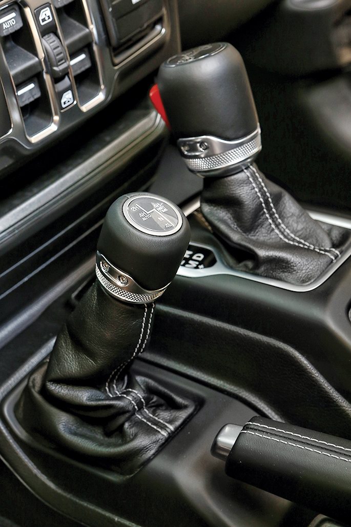 Новый Wrangler предлагает два типа трансмиссии, Command-Trac и Rock-Trac. Первая предназначается для внедорожника в комплектации Sport и Sahara, вторая – исключительно для Rubicon.