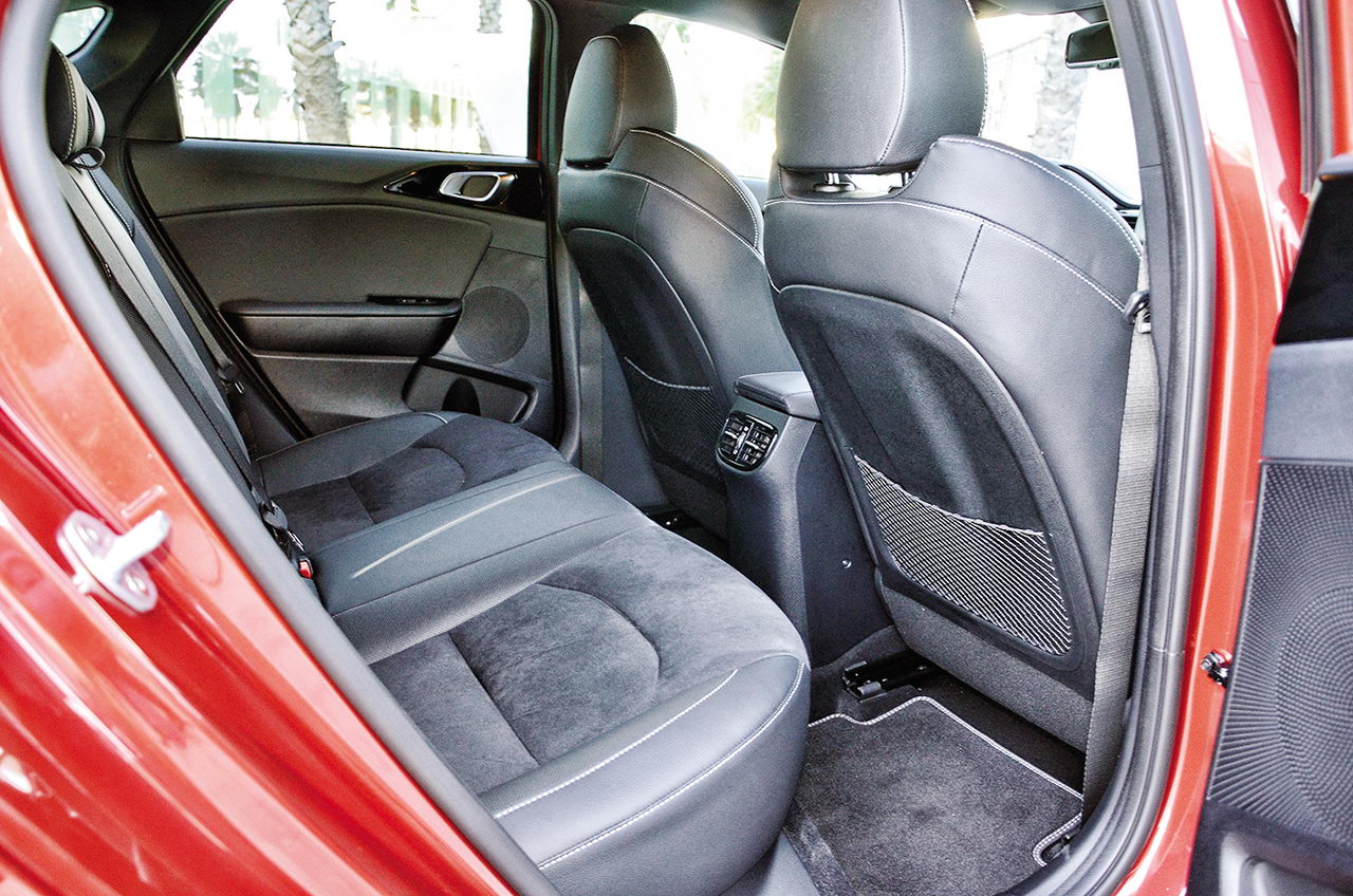 Разумеется, комплектация ProCeed умеет быть богатой. Двухзонный климат-контроль, подогрев всех сидений и вентиляция передних, обогреваемое переднее стекло и беспроводная зарядка для смартфона. Автомобиль готов держать себя в пределах полосы, заметно подруливая при необходимости, и балует круиз-контролем, адаптивным и адекватным. Под его управлением ProCeed уверенно замедляется вплоть до полной остановки и затем сам трогается с места. Не будет лишним в городе и контроль слепых зон, а также система, предупреждающая столкновение с автомобилями, велосипедистами и пешеходами.
