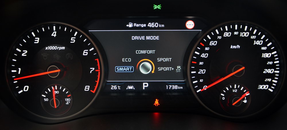 Режим Smart переключателя Drive Mode Select, который организаторы предложили испробовать на дорогах общего пользования, и впрямь умный. Быстро подстраивает отзывчивость автомобиля под водительский стиль. Если никуда не спешишь, Stinger – словно на кошачьих лапах. 8 ступенчатый автомат ZF переключается совершенно незаметно, реакции педали газа приятно скруглены. Но буквально пара шустрых разгонов, и машина меняется на глазах: амортизаторы зажимаются, коробка переключается позже, а об педаль газа, кажется, теперь можно порезаться. И ведь я еще не включал режим Sport +. Оттого бортовой компьютер показывает мне средний расход всего 12,4 л на сотню.