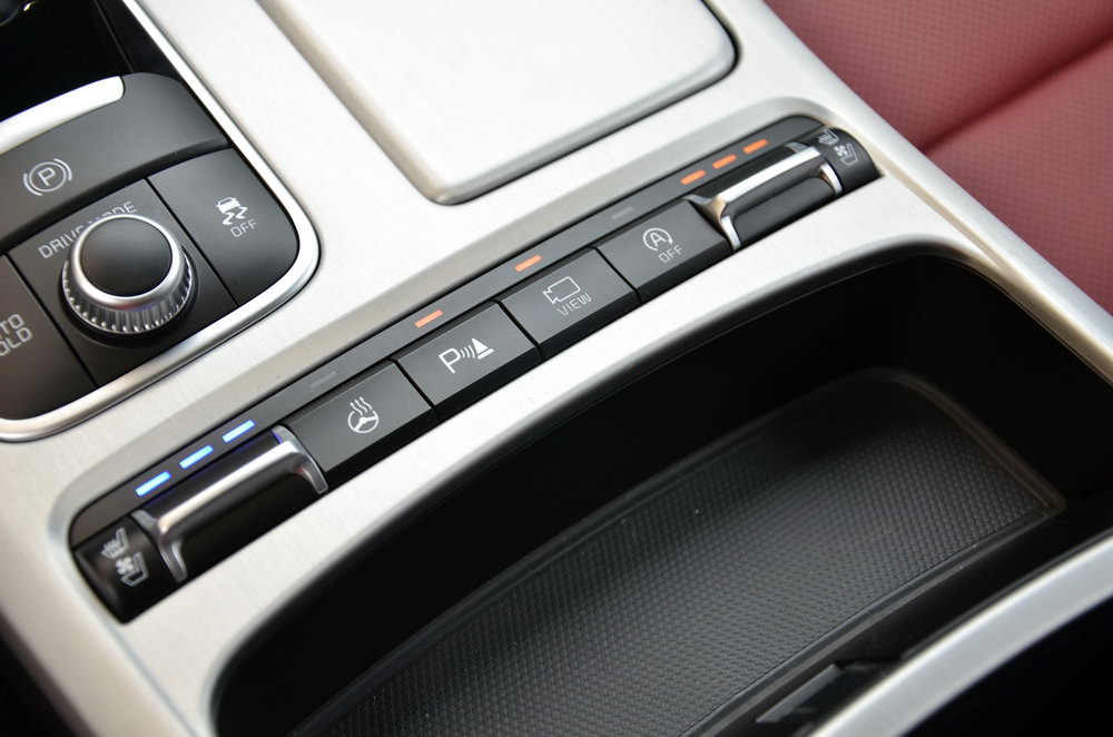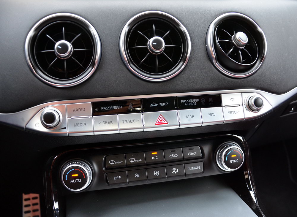 Однако у предсерийной версии Стингера (ЗР, 2017, №4) аэрокосмического в салоне было, кажется, больше. Так, селектор автомата в виде вытянутого цилиндра, напоминающего рычаг управления двигателями в самолетах, отлично гармонировал с «турбинами». В тестовом автомобиле селектор оказался иным: удобным для руки, но совершенно тривиальным внешне.