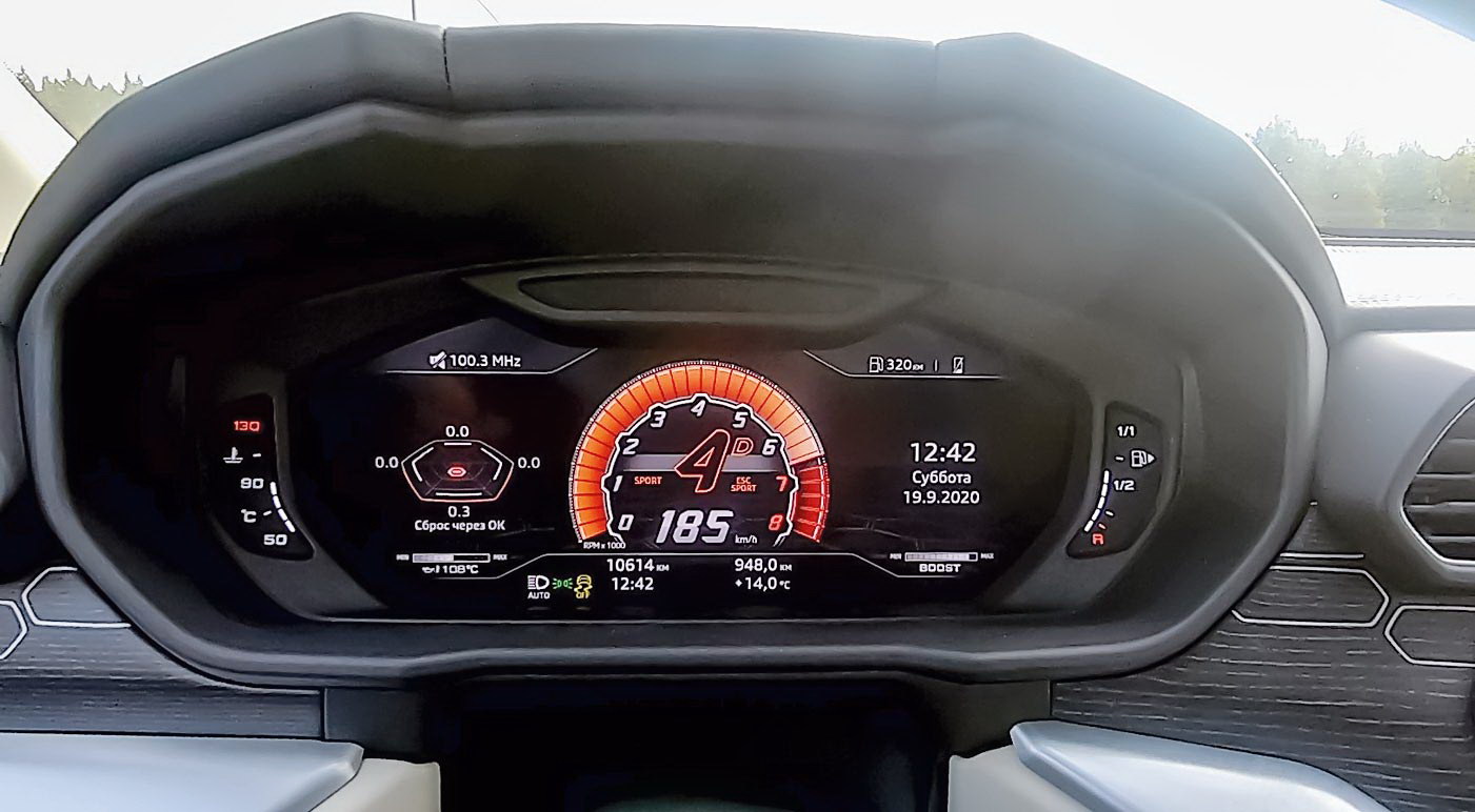 В режимах Sport и Corsa «чакры» выпускной системы открываются, и двигатель начинает дышать полной грудью, сотрясая воздух под каждый сброс газа. Скорострельность коробки передач увеличивается, подвеска зажимается, а электроника уходит в тень. И Lamborghini атакует ещё яростнее.