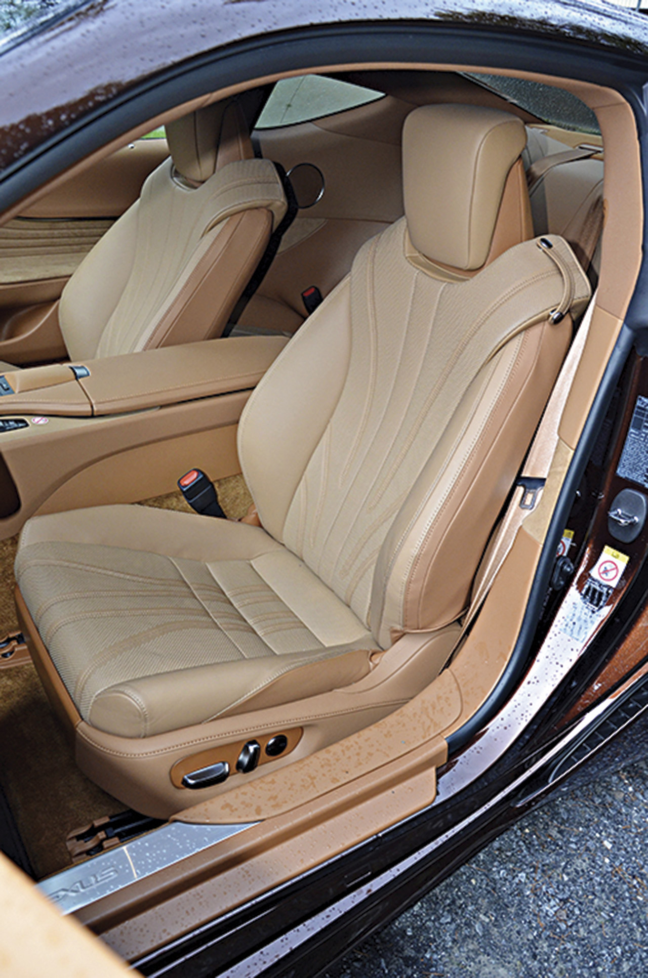 Для меня спортивный автомобиль начинается с удобства посадки – для разработчиков LC, видимо, тоже. Они перебрали не один десяток прототипов кресел, пока не нащупали своей спиной абсолютный комфорт. Он предлагается в двух формах: люксовой и спортивной. В последнем случае у сидений ощутимее боковые валики, выразительней поддержка для плеч, больше алькантары в обивке.
