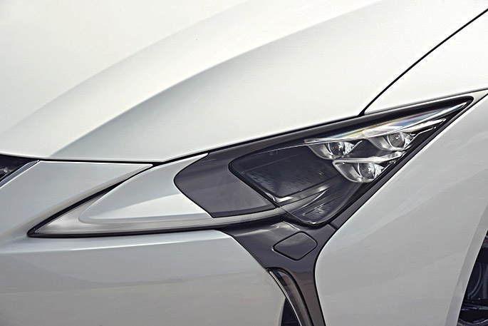 Их действительно легко спутать, концептуальный Lexus LF-LC и серийный LC. Внешне второй отличается от первого разве что патрубками выпускной системы и боковыми зеркалами. И те, и другие не потеряли в авангардизме, но увеличились в размерах: реальный трафик и настоящий мотор под капотом предъявили свои требования. Содержимое фар визуально почти не изменилось. Три небольших круглых светодиодных элемента в LF-LC получили трапециевидное обрамление в LC. Всего-то делов… Но по сути перед нами Polaric Ellipsoid System, тройка самых тонких LED-проекторов в автомобильной индустрии!