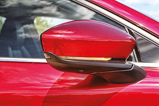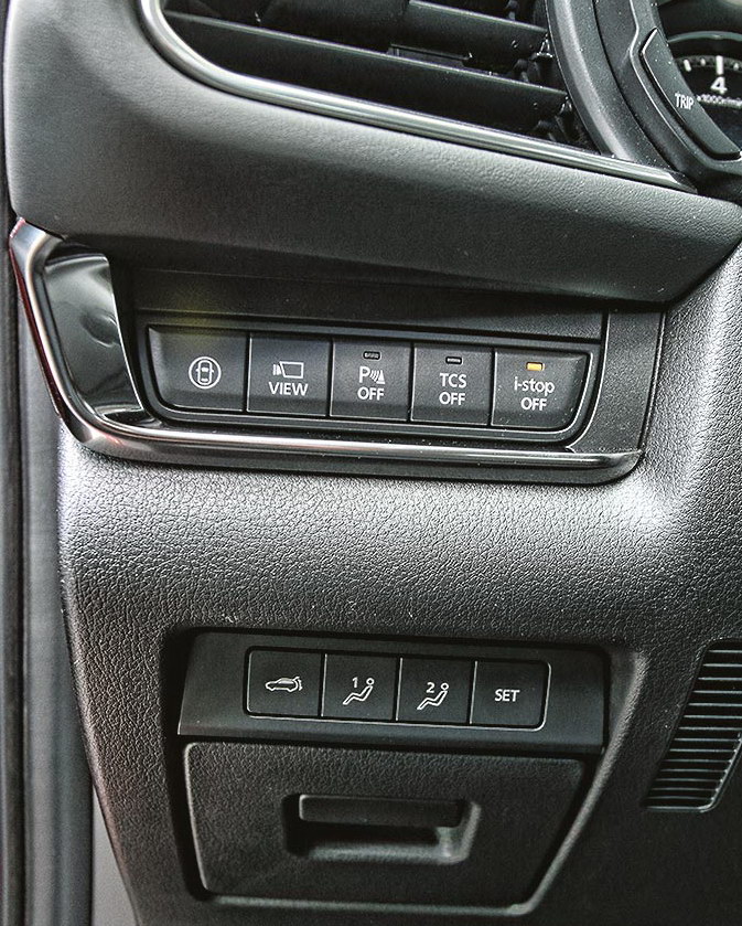 Во-вторых, помимо привычного для head-up дисплея набора информации Mazda выводит на него еще и индикаторы системы BSM, контролирующей слепые зоны. Мелочь, но важная и удобная, избавляющая от необходимости вертеть головой или развивать боковое зрение, пытаясь заметить срабатывание индикаторов BSM в зеркалах.