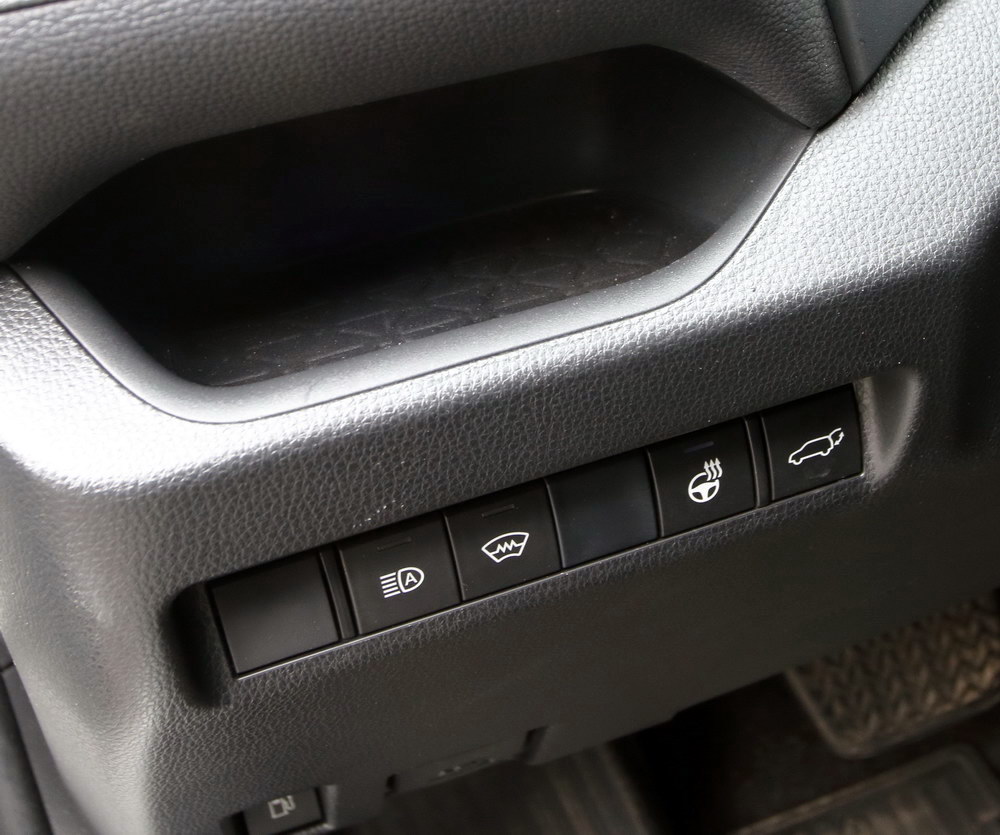 Хорошо, что есть подогрев руля. Но с кнопкой его включения тойотовцы наступили на те же грабли, что, например, и Renault, запрятав её в невидимое водителю место – слева на панели в аккурат за ободом руля. Вообще, к этому блоку клавиш хватает и других вопросов.