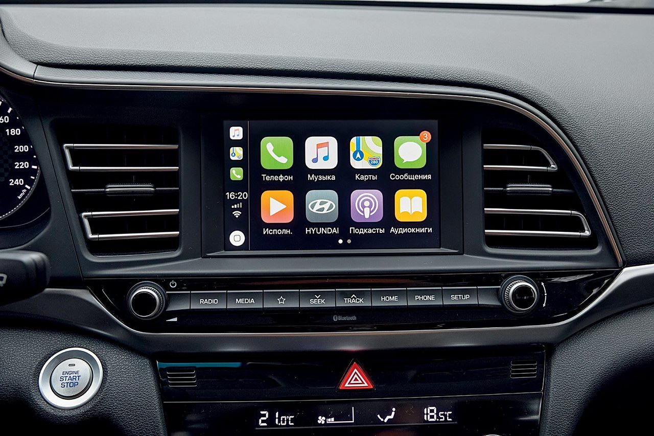 Но в лидеры по части оснащенности Elantra не выбилась. Адаптивного круиз-контроля нет. Системы автоторможения – тоже. Даже про электрообогрев ветрового стекла забыли, хотя на родственном Kia Cerato он есть давным-давно.