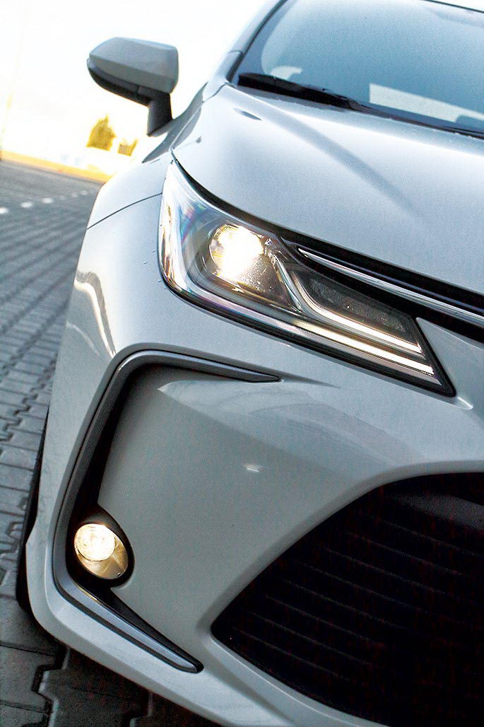 Близость двух славных моделей прослеживается даже визуально. О копировании речь не идет, но фамильные черты читаются легко. И если вам нравится, как выглядит новая Camry, то непременно глянется и новая Corolla. У них похожи фары, стильная «птичка», огибающая логотип, и солидная радиаторная решетка. Corolla, кажется, даже чуть больше заострена – запоминающийся, стремительный профиль.