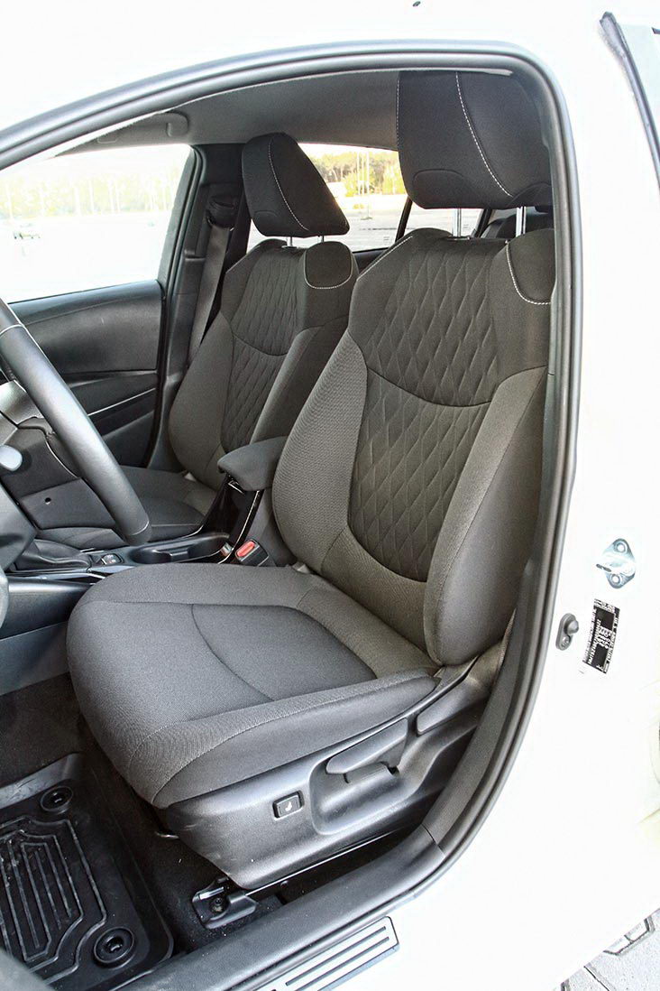 Однако субординация соблюдена, и заметнее всего это в салоне. Даже самая дорогая гибридная Corolla не шиканет кожаным интерьером: в топовой комплектации сиденья тканевые. А вот Mazda 3 седан (ЗР, 2019, №9) в максимальном оснащении предложит кожу, причем неплохую. Хотя станет ли этот шик востребованным, будучи на 100 тыс. грн дороже, чем тестовая Toyota, – тот еще вопрос.