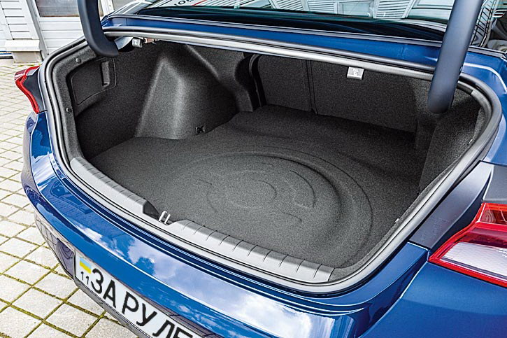 Не забыта и характерная черта Оптимы – хромированный молдинг, подчёркивающий линию крыши. Только теперь он не заканчивается на задней стойке, а продолжается на крышке багажника, соединяя две боковины. Силуэт больше напоминает фастбэк нежели седан. Красиво! Но это аукнулось на практичности. Багажник 500‑литрового объёма удивляет неприлично узким проёмом.