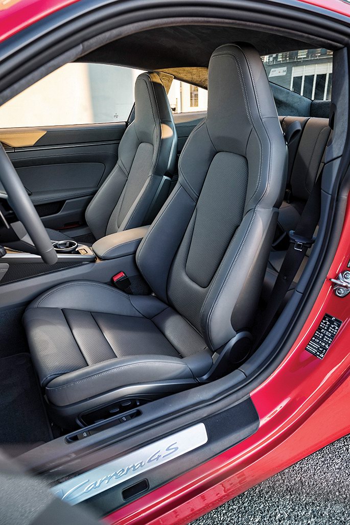 Если отбросить лирику и перейти к цифрам, легко заметить, что спорткар умеренно вырос именно там где нужно. Он стал лишь чуточку выше, буквально на 5 мм. Но этого вполне хватило, чтобы добавить 12 мм для голов передних пассажиров и 8 мм – для задних. Приятная, но мелочь: даже при моем среднем росте на галерке по-прежнему тесно. И я, поверьте, с удовольствием констатирую сей факт; отрадно, что 911-й не стал Панамерой.