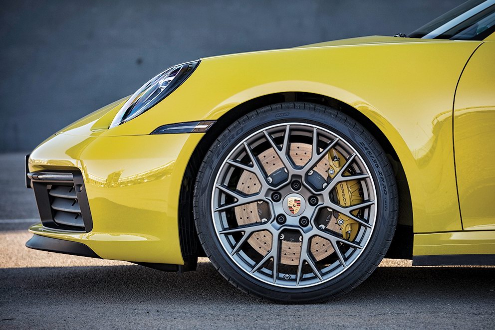 Даже минимальный прирост высоты старательно замаскирован увеличением длины, в которой 911-й прибавил 20 мм. Колесная база осталась неизменной, а наибольшим выгодополучателем стала ширина: спереди Carrera S на 45 мм шире предшественника. Прирост затронул не только кузов, но и колеи – такая геометрия позволяет ожидать улучшения ездовых качеств. И не она одна. У 911-го теперь разноразмерные колеса: 20 дюймов спереди и 21 дюйм сзади.