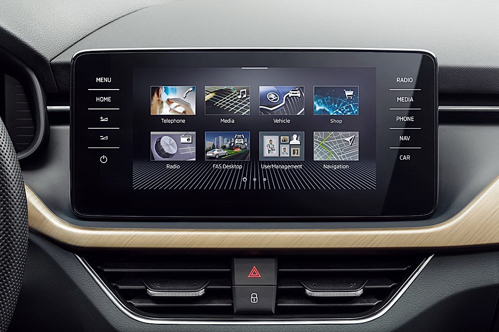 О внешности написано уже многое, так что мучать еще одним длинным рассказом не стану ни вас, ни себя. Скажу лишь, что после россыпи не самых запоминающихся моделей авторства Йозефа Кабана она кажется глотком свежего воздуха. Это касается и интерьера: полностью новая архитектура передней панели с «парящим» тачскрином мультимедийной системы и эффектной горизонтальной накладкой, удачно пародирующей алюминий, карбон или дерево. А еще Scala предлагает несвойственные сегменту опции вроде фоновой подсветки интерьера, индукционной зарядки для смартфона и электронной приборки.