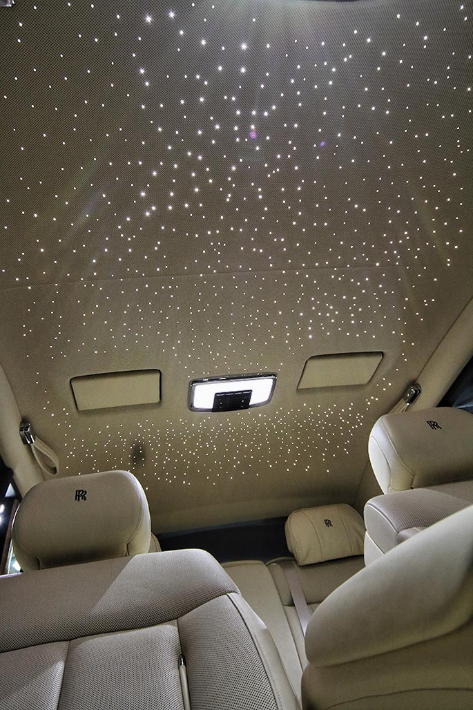 То самое небо в алмазах – вовсе не поэтический оборот. Владельцу Роллс-Ройса звёзды светят даже в самый яркий солнечный день: ведь ими усыпан весь обширный потолок Фантома. За обивкой из кожи тонкой выделки вручную проложены десятки, а то и сотни метров оптического волокна – и в перфорациях то и дело мягко мерцают ваши персональные небесные светила. И если звёзды зажигаются, то это кому-нибудь нужно: такой потолок – опция, вдобавок одна из самых дорогих, однако, как говорят, от неё ещё не отказался ни один клиент.