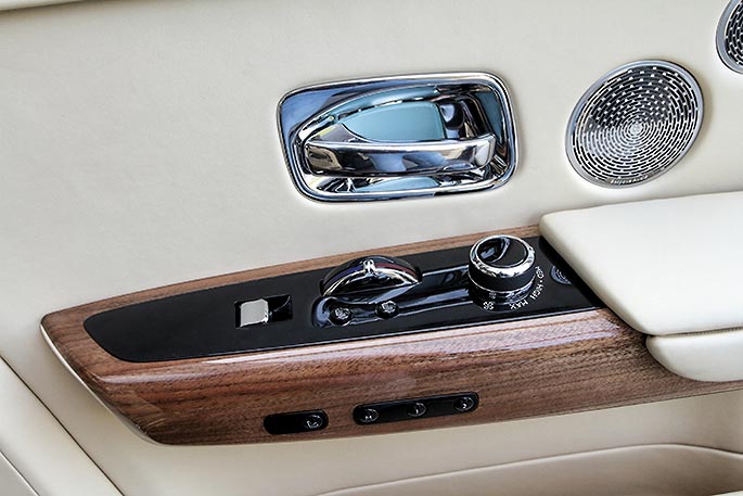 Климат – персональный на каждом из четырёх мест Фантома. Однако в Роллс-Ройсе вы не сыщете плебейских цифр температуры: вам даны благородные металлические полумесяцы с красной и синей полосами, разделёнными приливом рукоятки, и регулятор обдува с четырьмя степенями интенсивности. Честно скажу, это не только выглядит непривычно: в течение получаса я приноравливался к этим премудрым регулировкам, пытаясь настроить комфортную для себя «погоду».