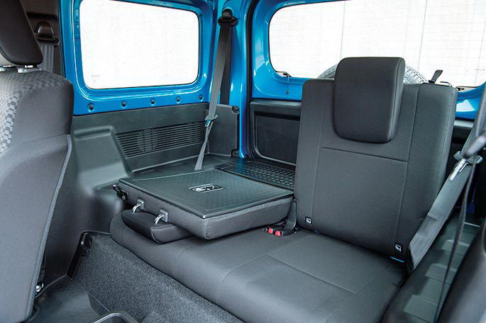 В случае с Джимником вы выбираете: или задние сиденья, или багажник. Если двухместная задняя лавочка разложена, то в остаток пространства между её спинкой и третьей дверью трудно впихнуть даже обычный рюкзак – так, разве что дамская сумочка или небольшой портфель войдут. Поэтому маленький самурай явно не тяготеет к семейной жизни. Как компромиссный вариант – можно усадить назад третьего, сложив вторую половину лавочки для нехитрого багажа: много сюда всё равно не войдёт.