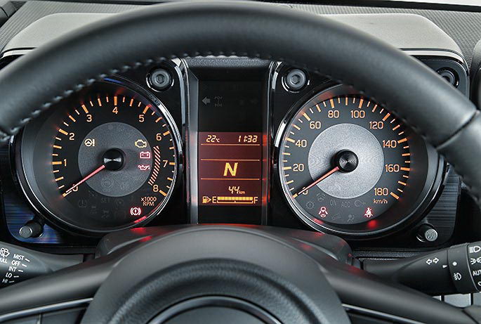 Современные нормативы потребовали от Сузуки приличного набора средств активной безопасности. Так что на Jimny теперь прописались электронные помощники: автоматическое аварийное торможение, ESP с компенсацией виляния на шоссе (ох как актуально для лёгкого коротыша!), системы слежения за разметкой и распознавания дорожных знаков, а также упомянутый ассистент спуска на бездорожье.