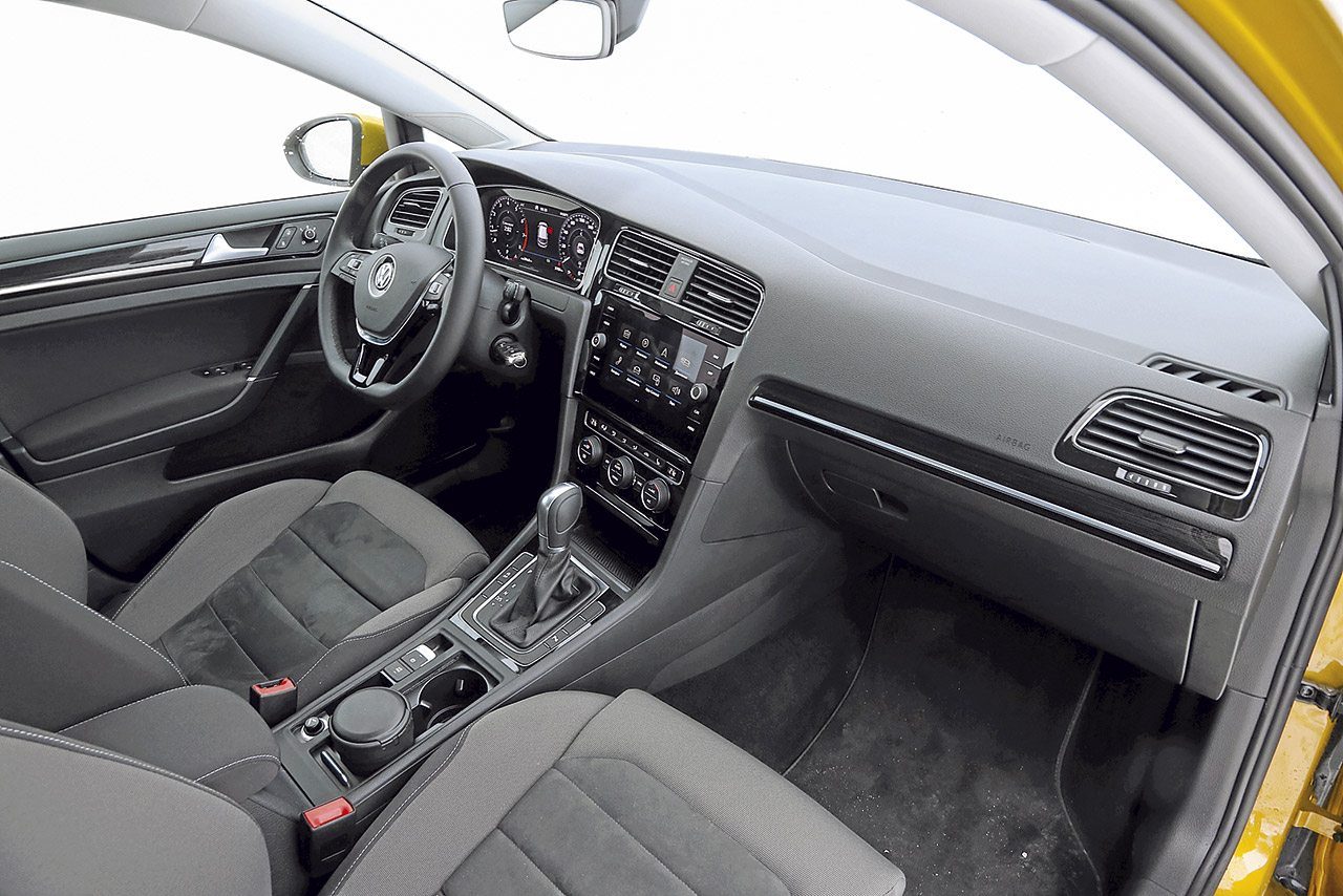 По приятности интерьера фаворит – Golf. Воздушный пластик передней панели, безупречно спрофилированное сиденье водителя, которое теперь умеет делать массаж. Благодаря алькантаре здесь даже пахнет по-аудюшному. Рестайлинг принес опционную цифровую приборку с диагональю 12,3 дюйма и обогреваемое переднее стекло без нитей накаливания – в его структуру интегрирован тонкий слой токопроводящего серебра. В жаркие дни эта штука препятствует чрезмерному нагреванию.