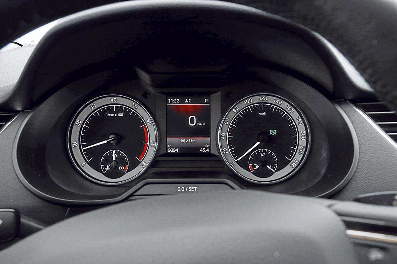 Облик рестайлинговой Октавии – вообще отдельная песня. Вам удалось за два года привыкнуть к оформлению передней части? Мне – нет. Ситуацию мог бы выправить «эрэсочный» цвет Rallye Green. Но в палитре гражданских версий лишь чертова дюжина в основном унылых (окей, давайте назовем их строгими) оттенков. Доплата за металлик – аж 15 790 гривен. И все-таки наши подопечные слишком разносторонние, чтобы мы выбирали только кошельком или глазами. Ведь правда?