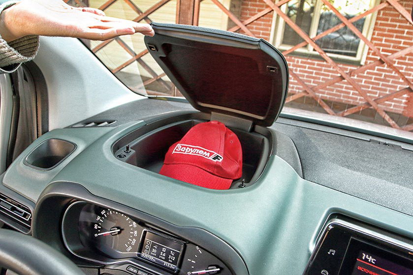 А это обилие больших и не очень больших вещевых отделений, куда только ни упадёт взгляд! Впервые за долгую практику я умудрился забыть в тестовом авто сразу несколько предметов: кепку благополучно пристроил в обширный «бардачок» над панелью приборов, пульт от шлагбаума растворился в одной из ниш на консоли, а пара журналов для коллеги спряталась на впечатляющей «антресоли» над ветровым стеклом.