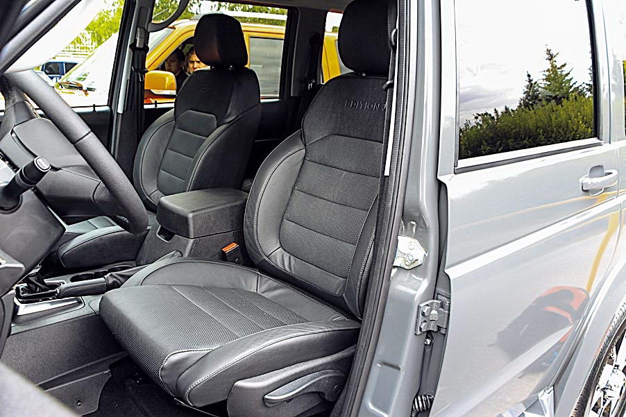 Патриот с автоматом можно вычислить по решетке радиатора (вместо хрома она обрамлена черным лаком) и оригинальным колесам. Понравилось новое водительское сиденье. Такое будет на всех автомобилях новой серии Edition I – с лучшей боковой поддержкой и в меру жесткой набивкой (не «табуреточной», как это было прежде). На фоне селектора автомата и двух педалей затерялась даже новая мультимедийная система, хотя ее тоже основательно перетряхнули и дополнили функционал. Изменилось меню, улучшены отклики экрана на касания – теперь вместо чрезмерно медленных они просто медленные.