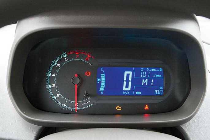 Как и у французов, руль регулируется только по углу наклона, однако неудобств это не вызывает. Инструментарий водителя скромный: имеется один дисплей с электронным спидометром, скромной строкой простого трип-компьютера и суточным одометром, и лишь тахометр «настоящий». Всего по минимуму.