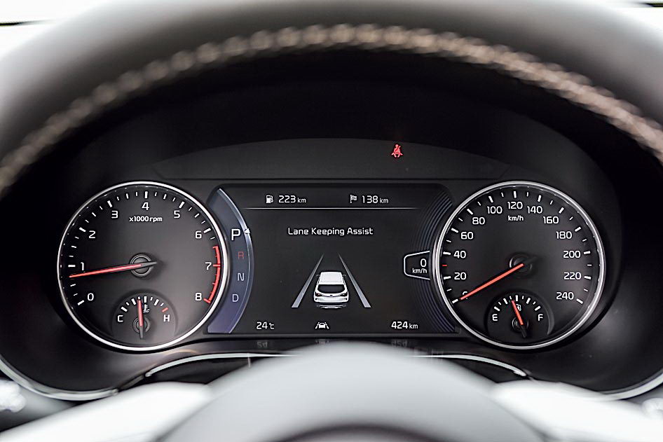 Едва ли не впервые в классе внедрены вентилируемые передние сиденья. Панель приборов гипнотизирует огромным семидюймовым экраном между циферблатами. А еще корейцы замутили неплохую аудиосистему с акустикой Bose, которой прежде в автомобилях Kia не было.